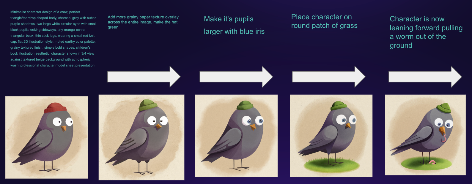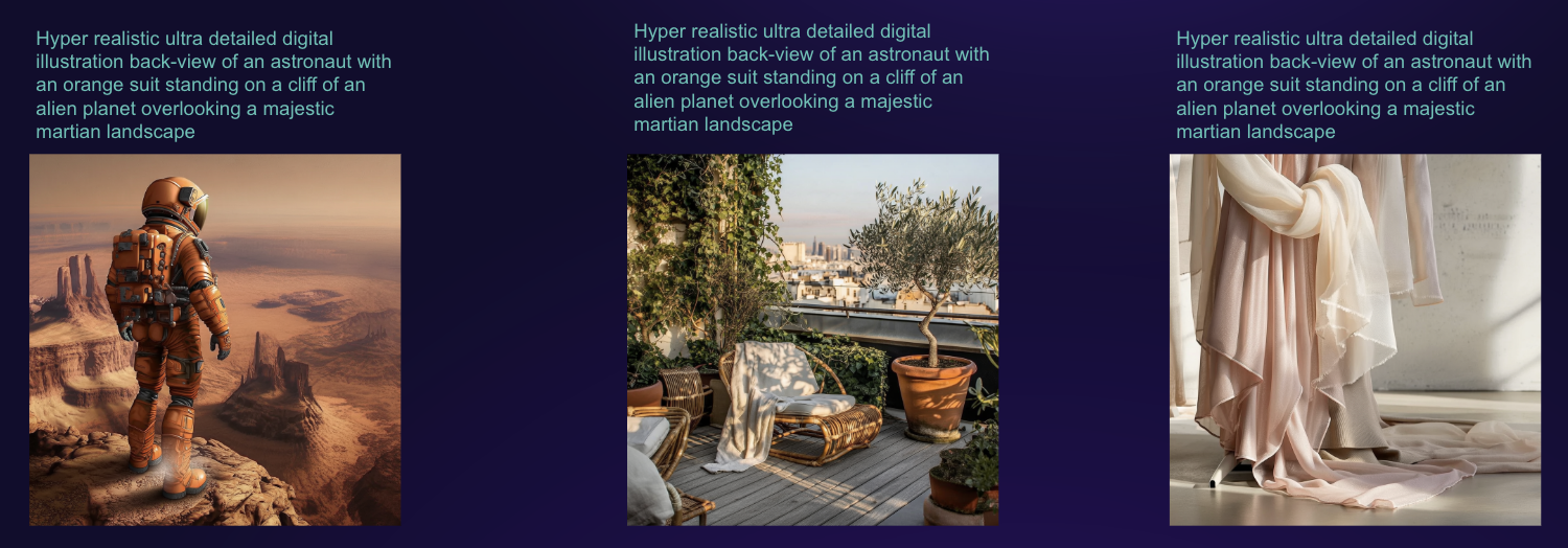 - Iterative controlled generation: Start from a short prompt or refine from a detailed one. Each edit updates only what you change.