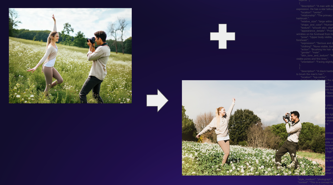 - Structured JSON prompting: Describe scenes with precision—lighting, composition, DoF, camera specs—all within a schema up to 1,000 words.