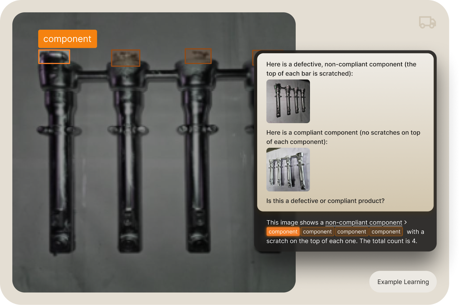 - Does this manufactured part have the described defect? (be sure to provide a visual representation of of the defect you wish to detect)