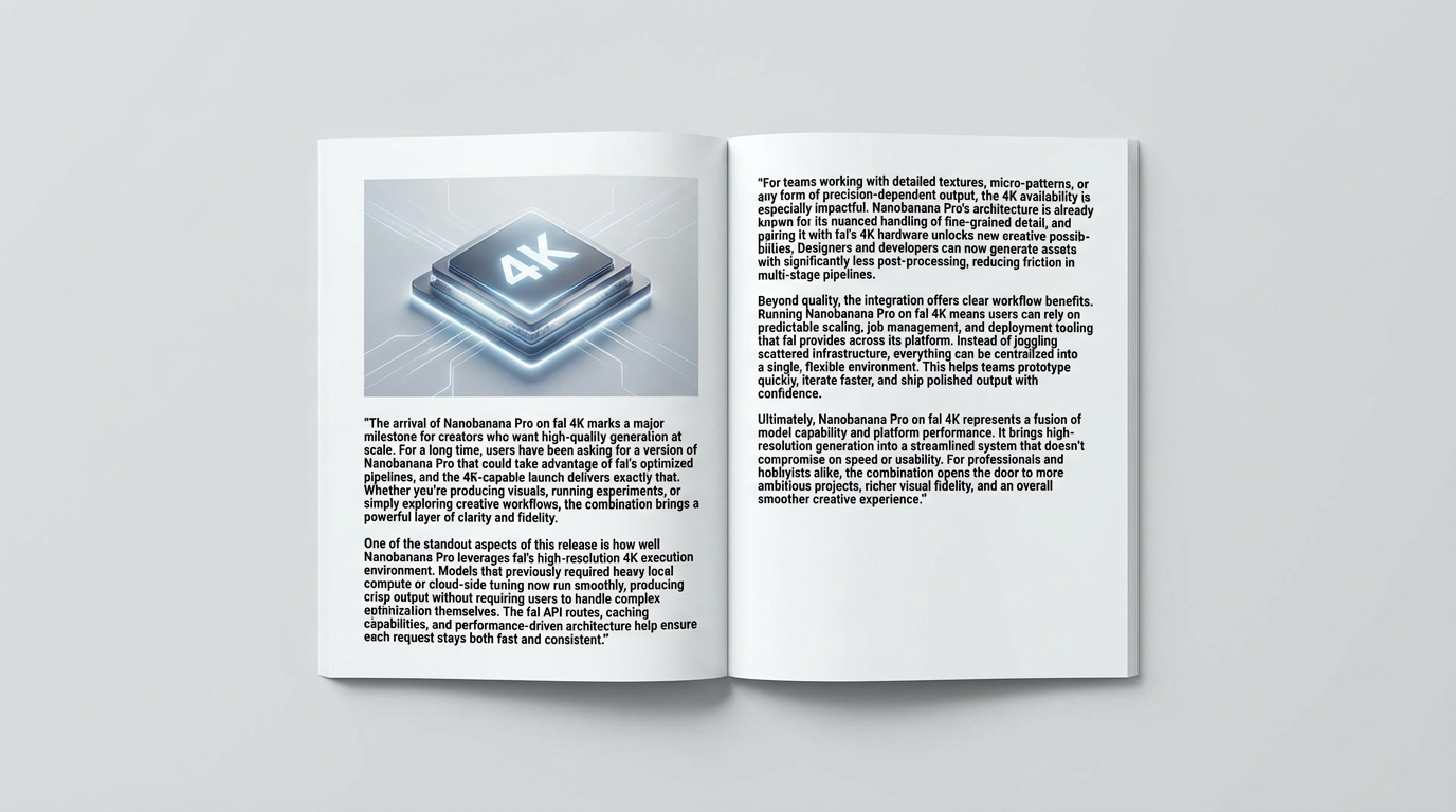 The easiest way to explore Nanobanana Pro's capabilities is through Fal's Playground, where you can experiment with prompts and see immediate results. A detailed guide on how to integrate Nanobanana Pro into your platform is available in our API documentation.