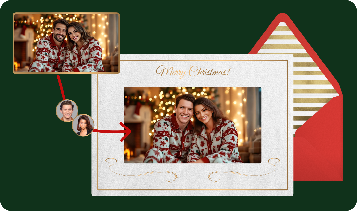 Multiplayer face swap using Easel AI image editing model for a greeting card example.
